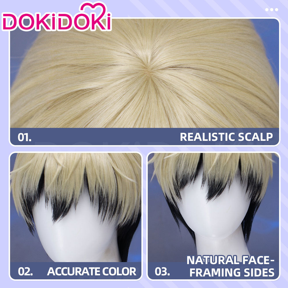 DokiDoki Anime Cosplay Wig Short Blonde Black Layered Hair
