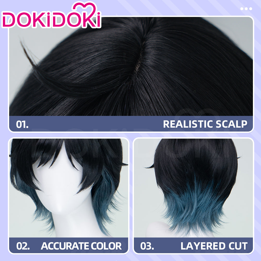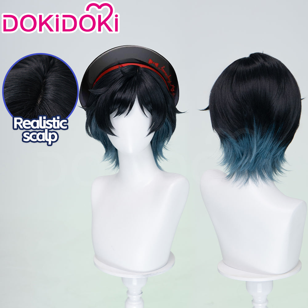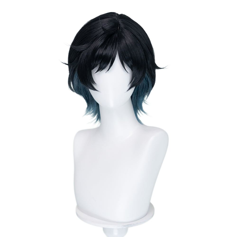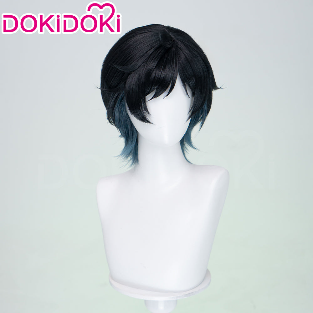 【Ready For Ship】DokiDoki Game Cosplay Wig Short Straight Black Green Gradient Hair Snow