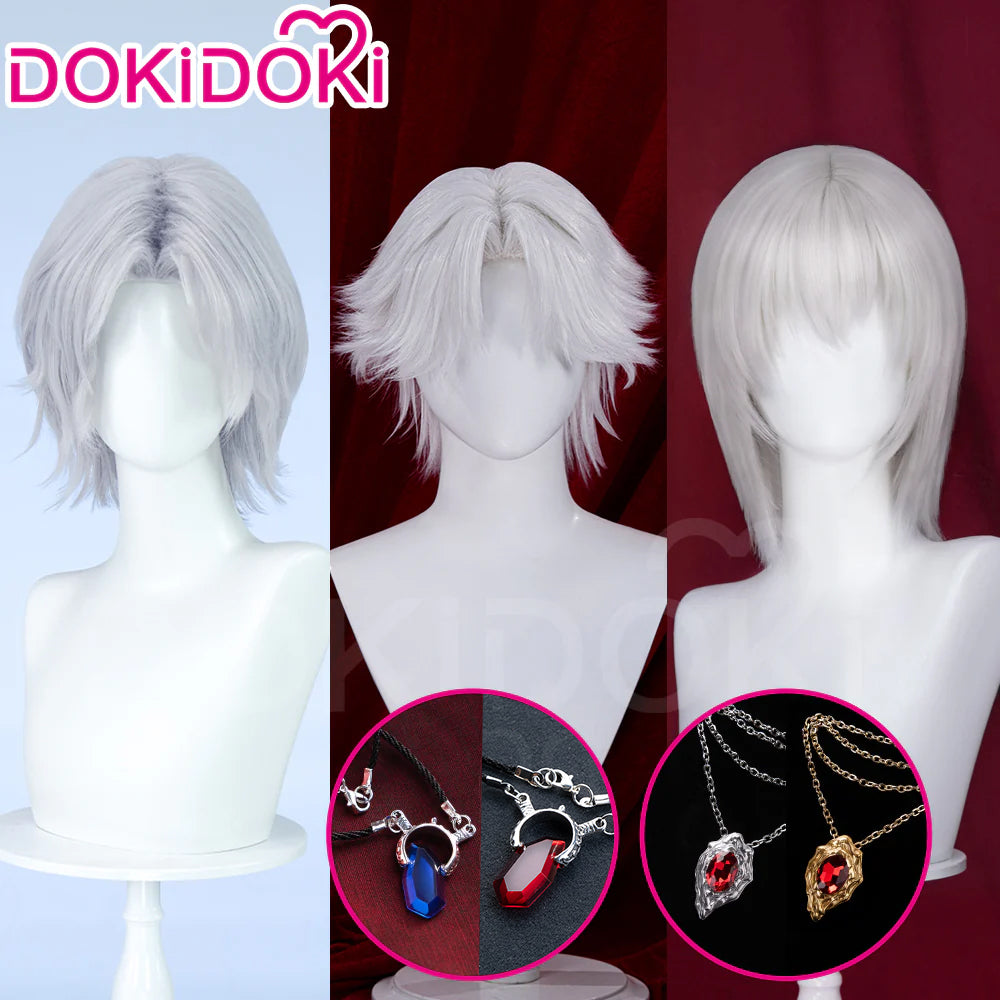 【Ready For Ship】DokiDoki Game Cosplay Wig / Necklace Short Straight Dark / Light Grey Men Hair