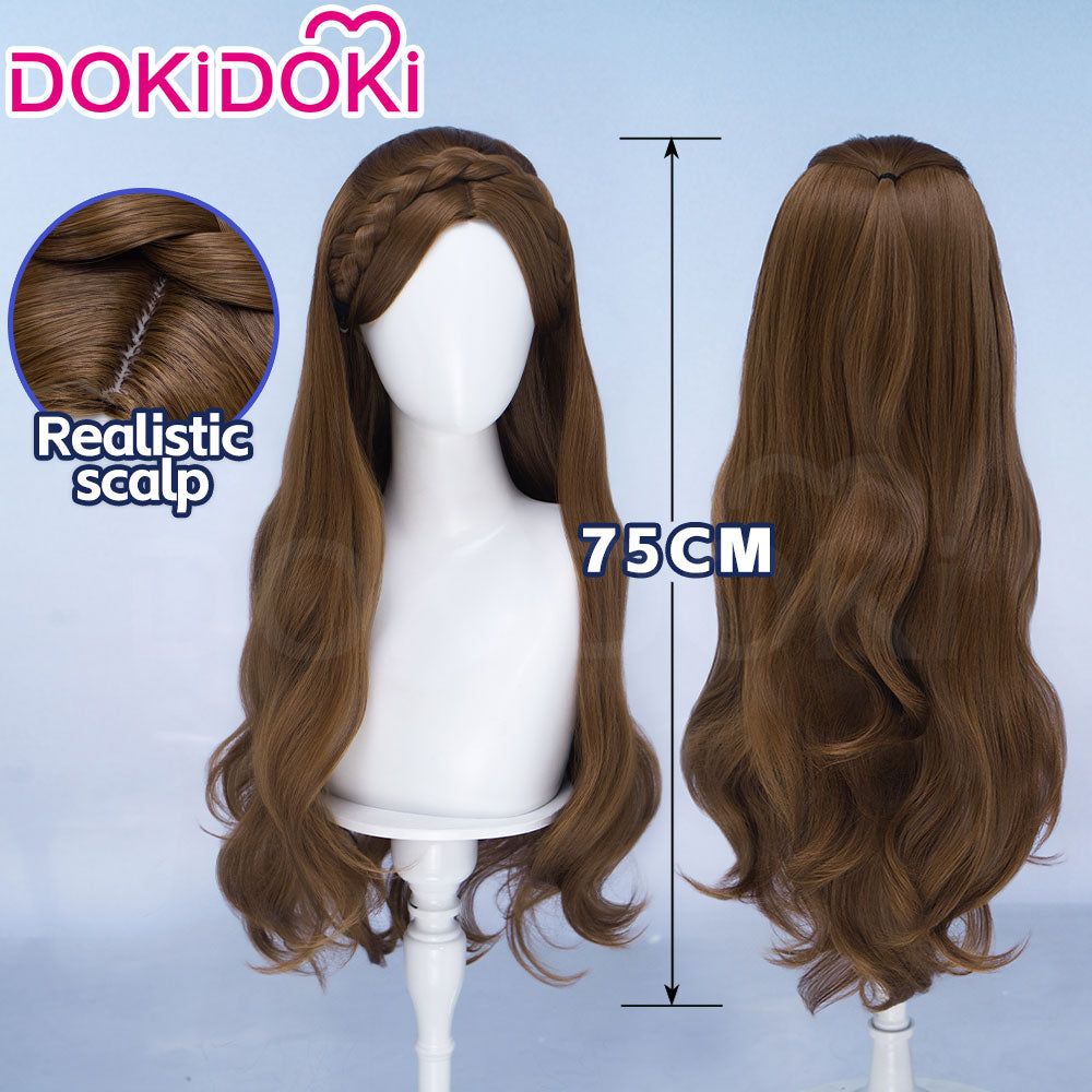DokiDoki Movie Cosplay Wig Long Curly Brown Braided Headband Hair