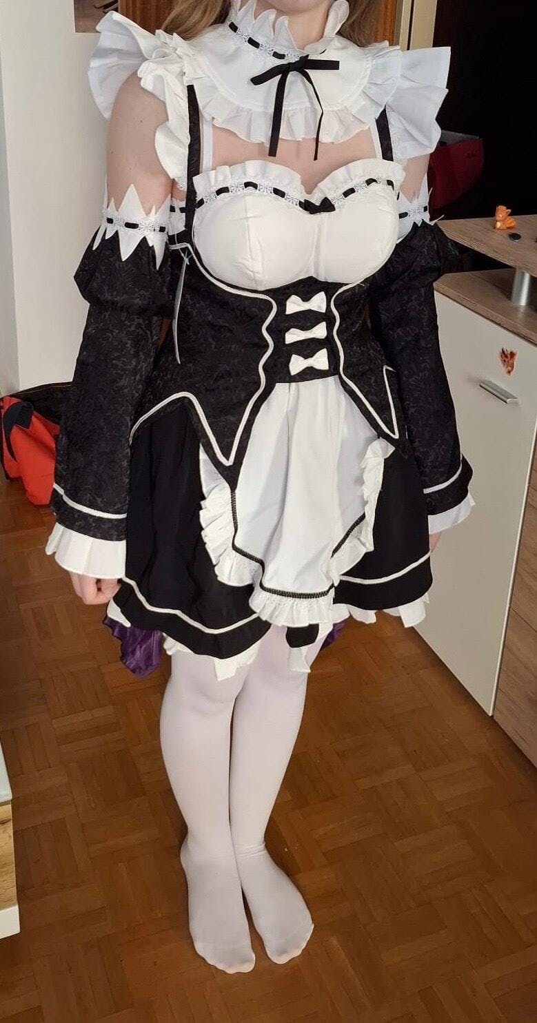 【Partially Ready For Ship】DokiDoki-SR Anime Cosplay Remm Ramm Costume Maid Black White Dress