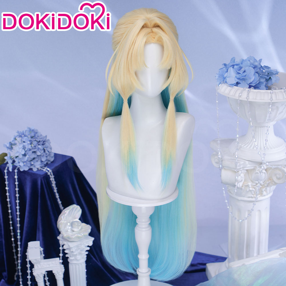 DokiDoki Honkai: Star Rail Cosplay Pearl Wig Long Straight Blonde Blue Gradient Hair Ten Stonehearts