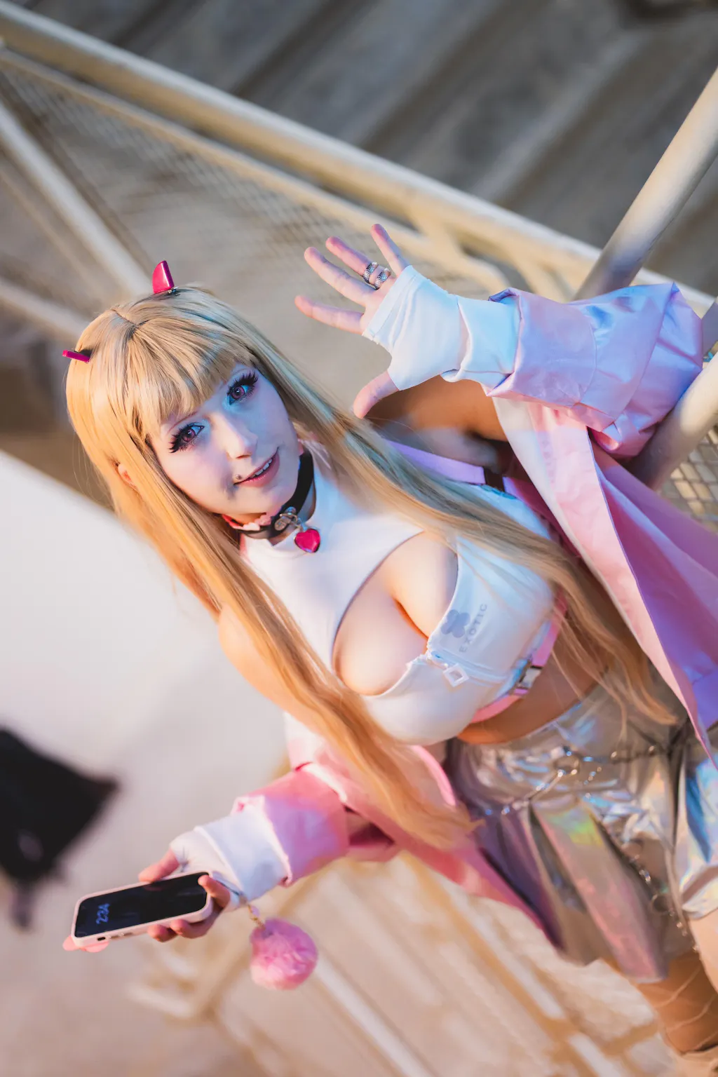 【 Ready For Ship】DokiDoki-R Game Cosplay White Dress Pink Coat Costume